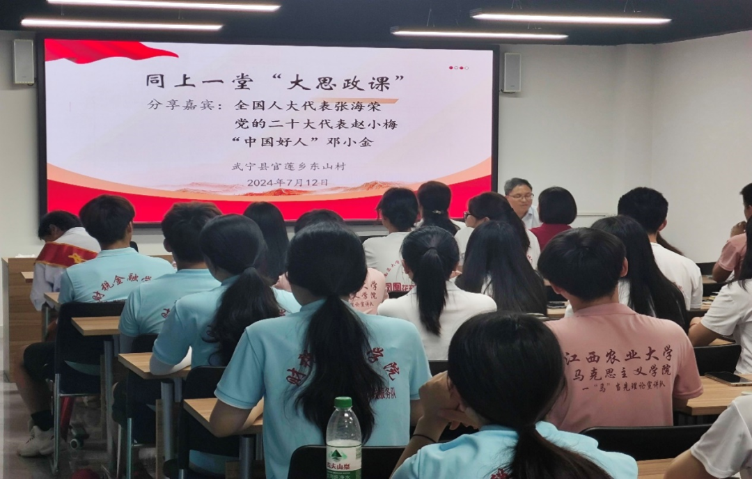 为深入学习贯彻党的二十大精神,积极践行习近平新时代中国特色社会主义思想,引导青年学子为中国式现代化贡献青春力量,2024年7月12日下午,betway西汉姆联官方网站“农缘 梦知行”社会实践服务队在九江市武宁县官莲乡东山村,联合江西农业大学、江西财经大学现代经济管理公司、南昌大学共青公司的暑期“三下乡”师生队伍,共计60人,共同上了一堂别开生面的“大思政课”。