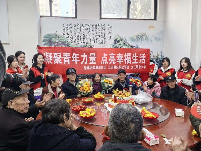 为深入学习贯彻习近平新时代中国特色社会主义思想,传承弘扬雷锋精神,3月17日,betway西汉姆联官方网站联合柴桑区志愿服务联合会、区政府办关工委、蛟滩湖社区及九江职业大学信息工程公司,组织 80 余名青年志愿者走进蛟滩湖社区幸福食堂,开展 "凝聚青年力量 点亮幸福生活" 主题志愿服务活动。活动通过 "助老服务 + 文明实践" 双轮驱动模式,用青春力量为社区老年群体提供精准化服务。