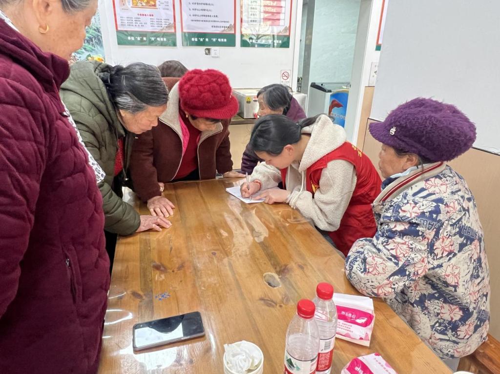 在信息登记区,"红马甲" 们展现出新时代青年的责任担当。面对老人浓重的方言和行动不便的状况,志愿者创新采用 "三听三核" 工作法:即 "俯身倾听、耐心细听、反复确认",确保老人信息零误差录入。志愿者们用真诚与专业赢得了社区居民的连连称赞。