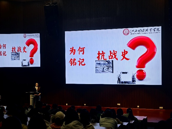 比赛中,校赛一等奖获得者杨梦婷同学以《铭记抗战史,砥砺青年行》为题,将视角聚焦于1937年日军空袭下,一个浑身是血的孩子独自坐在废墟站台下哭泣的震撼画面为切入点,串联起近代历史中的苦难与抗争,结合自身作为青年的亲历感悟,紧扣当代青年使命。用铿锵有力的语言阐述“铭记历史不是沉湎伤痛,而是以先辈血泪为鉴,扛起时代重任开创未来”的观点,情感层层递进,极具感染力,赢得评委与观众的数次掌声。